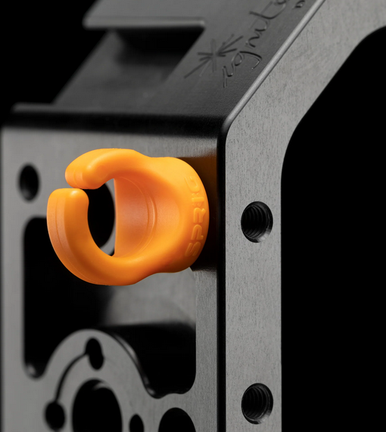 Offered as a 6-pack, the green Sprig Cable Management Device presents filmmakers and sound recordists with a fast, convenient, and simple solution for keeping cable runs tidy on their cinema equipment and camera rigs. With a quick twist, it can be installed in or removed from a 1/4"-20 threaded hole in a hurry. Since it is constructed from a durable injection-molded material, it can withstand the rigors of life on location.