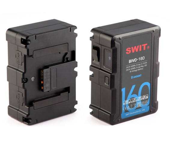 The SWIT BIVO-160 is a high-capacity, bi-voltage B-mount battery designed for professional cameras and accessories requiring 14.4V or 28.8V. The battery intelligently reads the ID pin resistor of the B-mount plate and outputs the correct voltage, ensuring safe and reliable operation with ARRI, Blackmagic, and other standard voltage devices.