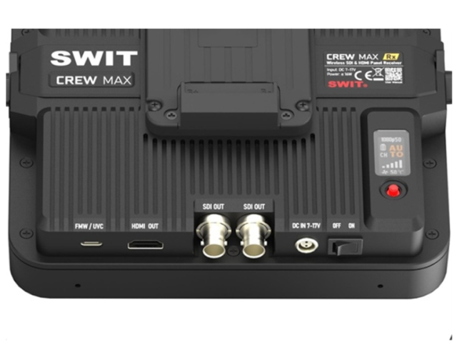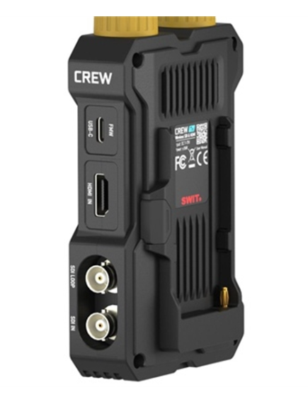 The CREW MAX is designed for professional workflows, offering AES-256 dual encryption for secure transmission, USB-C video capture for PC/Mac, and versatile power options with NP-F battery plates on the transmitter and V-mount on the receiver. A high-bright OLED display provides intuitive monitoring and configuration, making it a robust solution for demanding video environments.