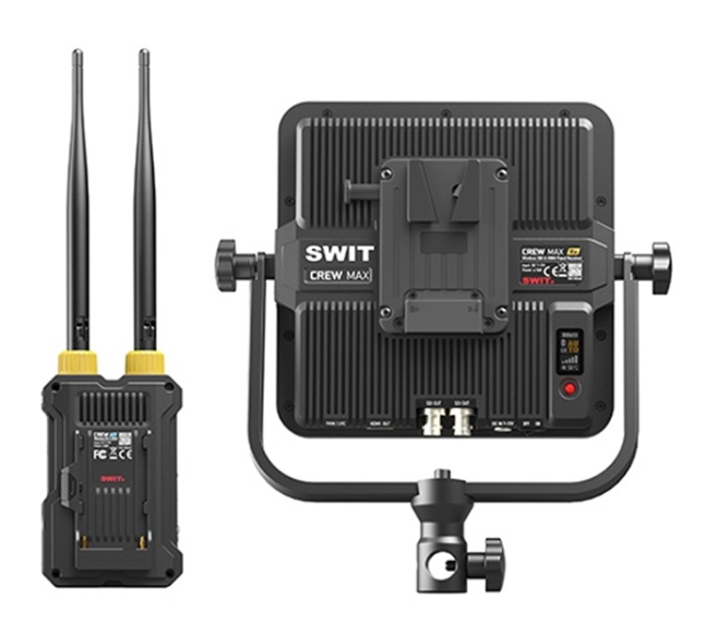 The SWIT CREW MAX is a professional wireless video transmission system offering up to 3 km (10,000 ft) line-of-sight range, ultra-low latency, and robust multicast support, designed for high-end broadcast and film productions.