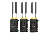 The SWIT CREW-V Tx + 2Rx package combines one dual-sided V-mount transmitter with two wireless receivers for stable HD video transmission up to 1.2km line-of-sight. With ultra-low 32ms latency, 3G-SDI, HDMI, USB-C outputs, AES-256 encryption, and versatile power options, this set is well-suited for multi-monitor professional film and broadcast applications requiring secure, real-time video distribution.