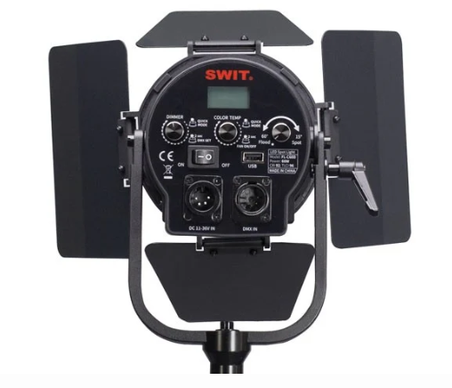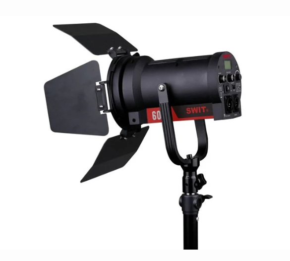 The spotlight also features a 5V USB output for powering the SWIT Pocket Wireless DMX receiver and supports wide input voltage (11–36V DC) through a 4-pin XLR socket. A V-Mount or Gold Mount battery plate allows flexible power options for portable setups. Lightweight and compact, the FL-C60D(Pole) KIT mounts easily to light stands via its U-shaped pole yoke, making it an ideal choice for studio, on-location, and field productions.