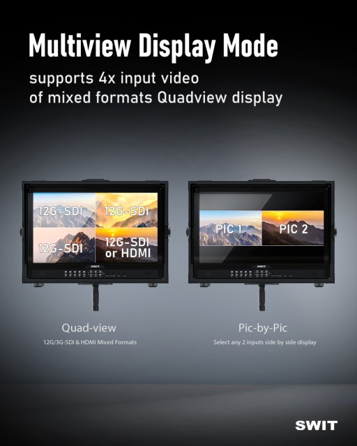 This 23.8” 4K HDR Field Production Monitor is designed for professional use, offering a bright 1000nits display for clear viewing in sunlight. It features extensive video interfaces including Quad 12GSDI and HDMI 2.0, making it an ideal solution for multi-source field production. The monitor comes ready for use with a flight case and essential accessories.
