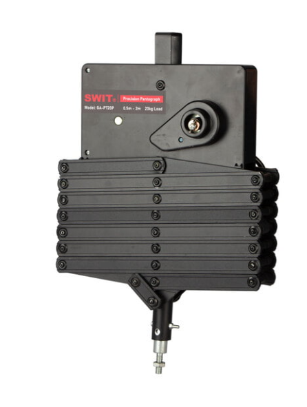 The SWIT GA-GT15P Precise Positioning Pantograph Hinge is a heavy-duty rail-track hinge that enables precise control of studio light positioning, supporting loads up to 23kg and adjustable from 0.5m to 1.5m.