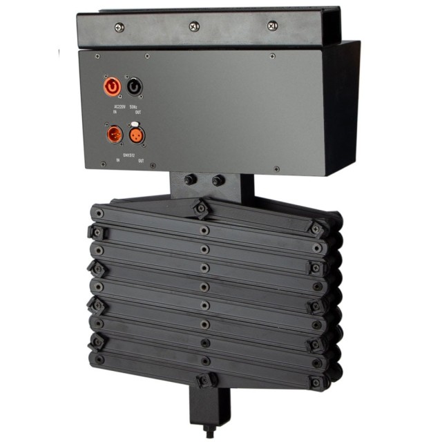 On the rear side of the pantograph, it allows you to fix light power cable or DMX cables on to each section, and when the light is moving up and down, the cables will be well organized, stretching together with the pantograph.