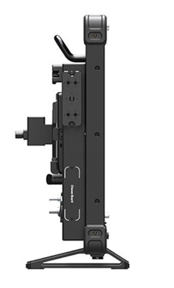 Additional professional tools include anamorphic de-squeeze, custom false color, zebra, waveform, vectorscope, histogram, peaking, focus assist, crosshatch, safe area guides, SDI audio meters, and timecode display. Power options include AC, 4-pin XLR, or V-mount battery, making it flexible for studio or field use. The monitor is compatible with flight case installation kits (SKU: K21-FC) and includes interchangeable cheese plates and C-stand mounting adapters for versatile mounting and rigging.