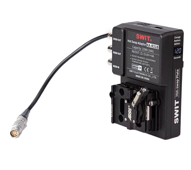 The SWIT KA-R31B B-mount Hotswap Plate is a professional power and signal distribution solution designed specifically for ARRI ALEXA MINI and MINI LF cameras. Featuring built-in backup battery cells, 28V regulated output, and SDI distribution, it enables true hot-swapping without powering down the camera.