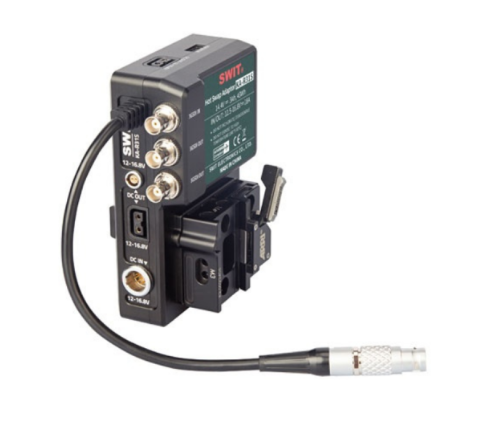 The SWIT KA-R31S is a high-load V-Mount hot-swap adapter plate designed for ARRI ALEXA Mini cameras, featuring multi power sockets and an integrated SDI 1-to-2 distributor for efficient on-camera power and signal management.