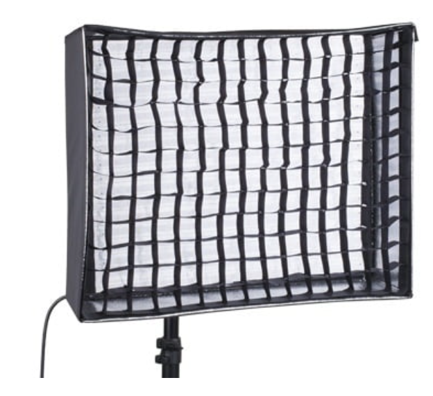 The diffuser softens the LED output to create flattering, even lighting, reducing harsh shadows and glare—ideal for interviews, portraits, broadcast, and studio productions. The included egg crate (fabric grid) narrows the beam spread, minimizing light spill and allowing better control over lighting direction.