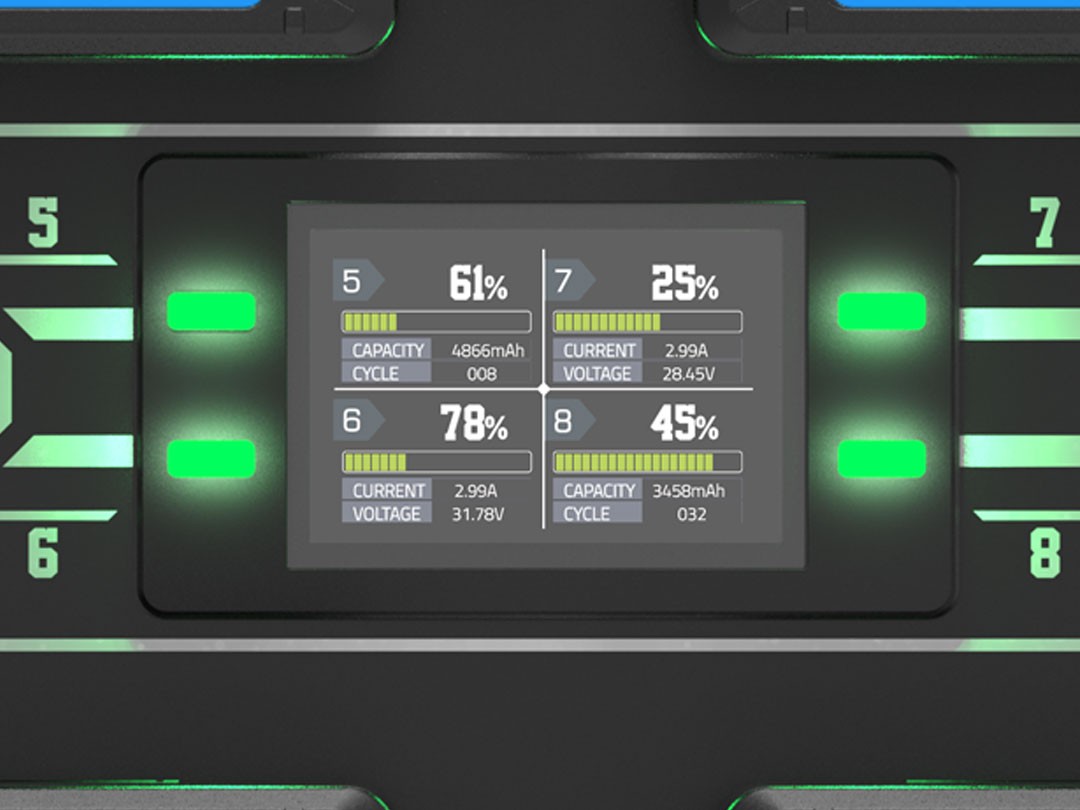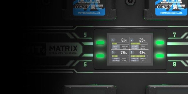 Overall, the MATRIX-B8 combines high charging efficiency, multi-battery simultaneous capability, and flexible installation options, positioning it as an essential tool for managing large quantities of professional battery packs with top fast charging performance.
