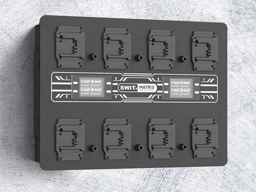 The MATRIX-B8 supports fast simultaneous charging for up to eight B-mount batteries, such as those from the SWIT HB-A290B series and BIVO series, enabling efficient workflow and minimizing downtime in professional video production environments. Its charging technology is engineered to provide stable voltage and current output to maximize battery lifespan while delivering top charging speed.