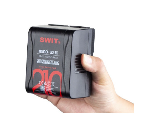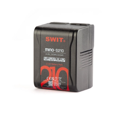 The SWIT MINO-S210 is a compact 210Wh V-mount pocket battery delivering up to 200W/16A constant output for cinema cameras and lights. Featuring D-tap, USB-A, and 65W USB-C output with 48W USB-C fast charging input, it supports high-power devices including the RED V-Raptor while maintaining a lightweight, ultra-compact desig…