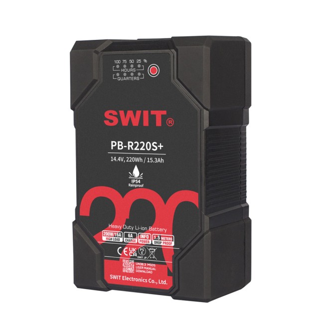 The Swit PB-R220S+ is a high-capacity V-mount battery that is ideal for long-term operation or for lights with high power consumption.