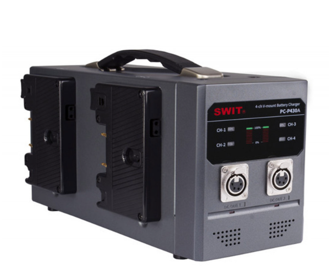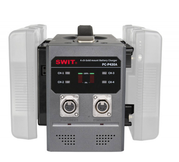 The SWIT PC-P430A is a professional 4-bay Gold Mount rapid charger designed to charge up to four lithium-ion batteries simultaneously at 16.8V/3A per channel. Featuring dual 4-pin XLR DC outputs (6A/90W), universal 100–240V AC input, and intelligent protection circuitry, it also functions as a reliable AC-to-DC power supply…