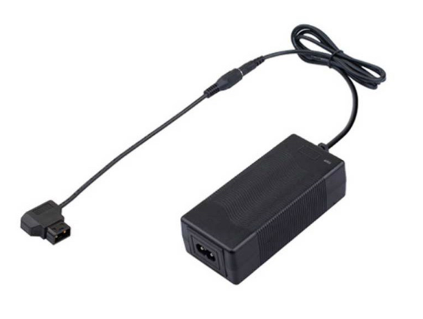 The unit consists of an AC-DC power supply module and a DC D-Tap charging cable, delivering a DC output of 14–16.8V at 3A (50.4W). It supports worldwide AC input (100V–240V, 50/60Hz), making it perfect for international travel and on-location shoots.