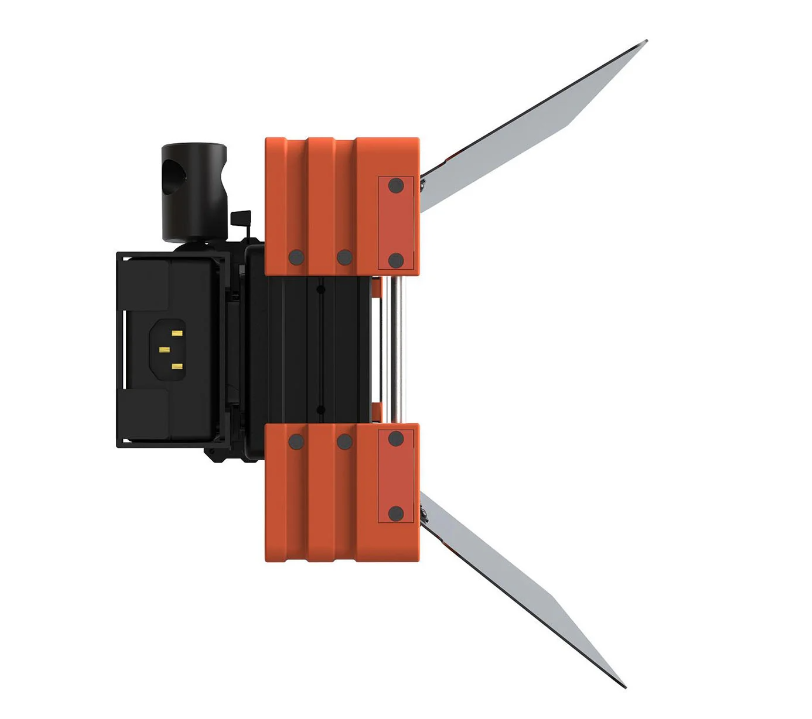 Designed for professional control, the light supports DMX512 for color temperature and dimming, and features an LCD display showing dimmer percentage, color temperature, and DMX settings. A 360° pan and tilt ball head bracket allows easy positioning, while power can be supplied via AC adapter, DC 12–36V XLR input, or an onboard V-mount battery plate. An optional pole-operated yoke is available for enhanced studio control.