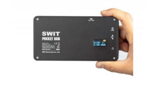 The SWIT S-2712 is a compact 12W RGBW LED panel light featuring 204 high-quality LEDs, delivering 3.6 million color variations through HSI control and a wide bi-color temperature range from 2500K to 9000K, powered by a built-in 3000mAh battery with USB-C fast charging.