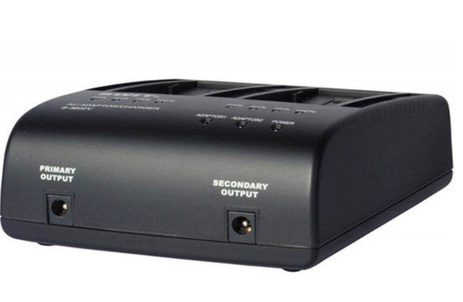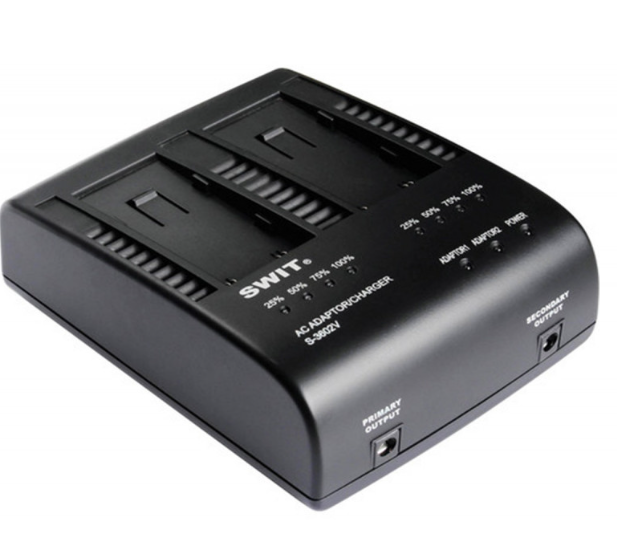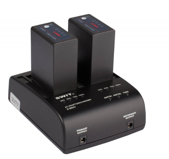 The SWIT S-4030 is a 4-battery V-mount power station that provides dual 24V outputs