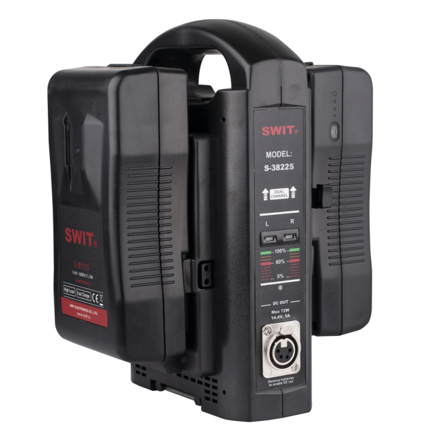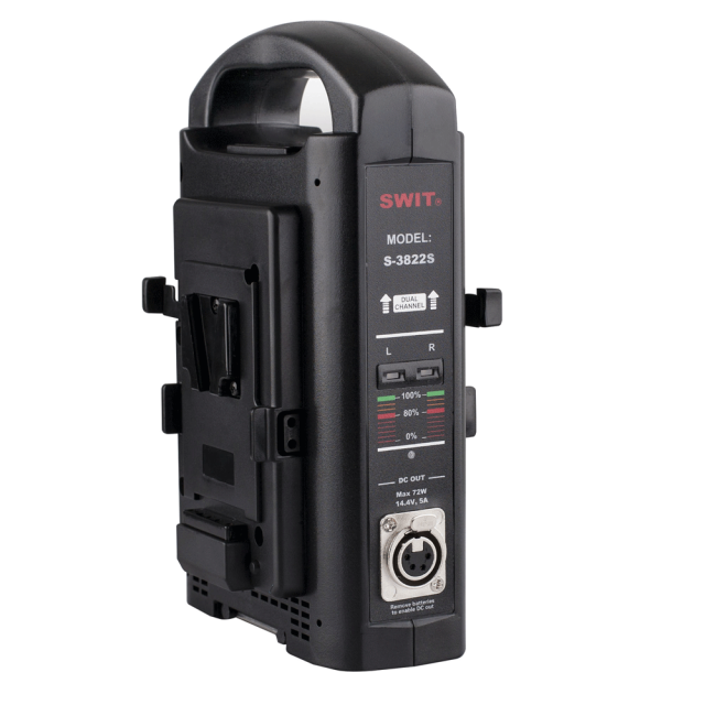 SWIT S-3822S is a 2-channel simultaneous charger, and powersuply for V-Mount batteries