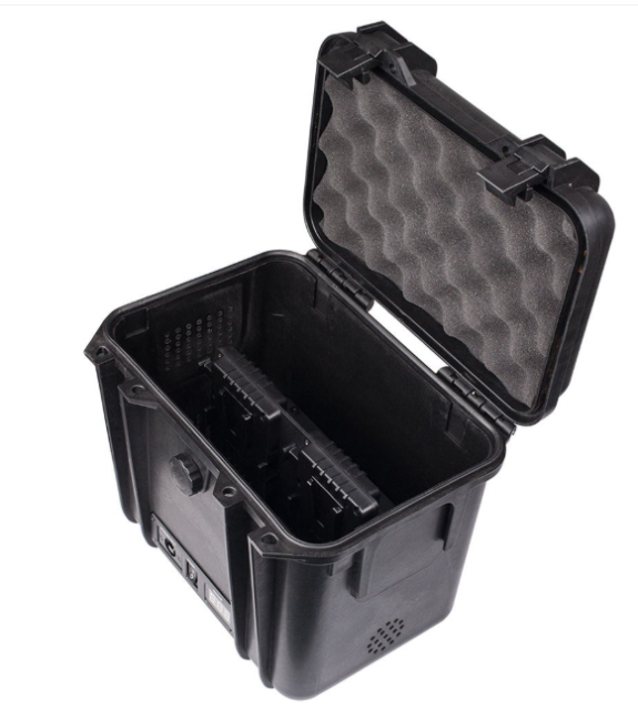 The SWIT S-4020 is a robust 12V/24V 4-battery power station box designed for high-consumption