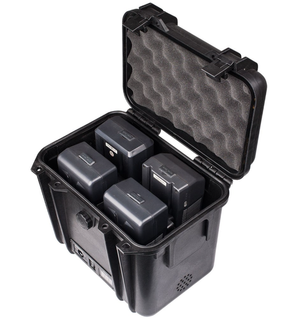The SWIT S-4020 is a robust 12V/24V 4-battery power station box designed for high-consumption