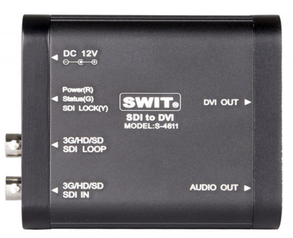 The SWIT S-4611 3G/HD/SD-SDI to DVI Converter allows you to display SDI video sources on DVI monitors, TVs, projectors, and video walls with ease. Supporting resolutions up to 1080p60, this compact unit converts a single 3G/HD/SD-SDI input to DVI-D output while maintaining high image quality and signal stability.