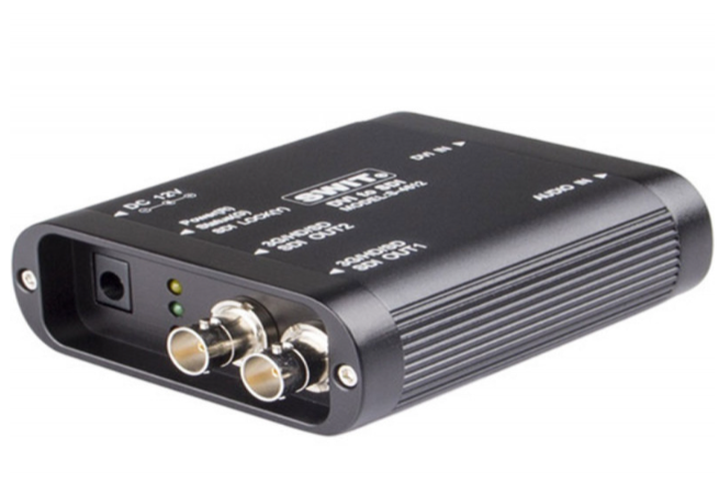 A built-in SDI loop output enables simultaneous connection to a secondary SDI monitor for local previewing. The converter also de-embeds up to two channels of embedded SDI audio (48 kHz) and outputs them via a 3.5 mm stereo analog jack, making it suitable for monitoring or external speaker setups.