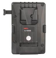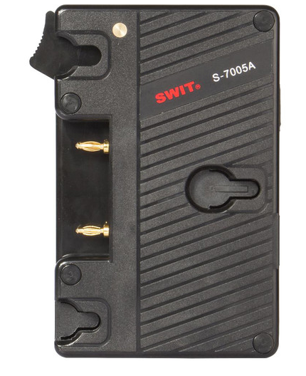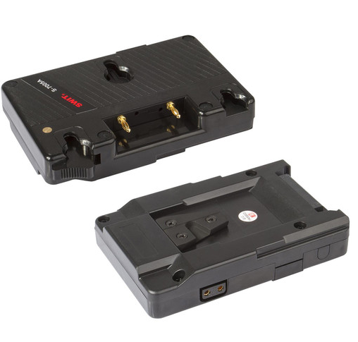 The SWIT S-7005A Gold Mount Battery Plate Adapter allows you to power your V-mount camera using Gold mount batteries, offering flexibility for multi-brand setups. Compact yet durable, it features a metal V-wedge, a battery release button, and a 14.4V D-Tap output for powering accessories.