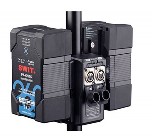 The SWIT TD-R210S Bi-Voltage Light Stand Power Adapter (V-Mount) is a high-capacity dual-battery power solution designed to run high-power 24V and 48V lighting fixtures using just two V-Mount batteries. Delivering regulated 24V (240W max) or 48V (500W max) outputs, it supports demanding lights such as Skypanel S60/S120 at full output. Built with Neutrik XLR connectors and designed for mounting on 25–45mm light stands, the TD-R210S offers a portable and reliable power solution for professional studio and field productions.