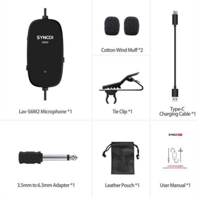 SYNCO Lav-S6M2 is an upgraded condenser lavalier microphone. It features the Mathematics Process Technique to enhance audio signal and compress common-mode noise, the Low Cut Filter and Gain Control to make instant response to complicated surroundings, and the rechargeable large-capacity lithium battery to stay workable after daylong shooting, in addition…