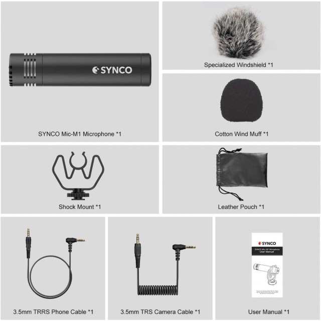 High-class Cardioid Condenser Capsule - SYNCO Mic-M1 microphone uses a Φ22 cardioid condenser capsule which achieves higher sensitivity and superior sound quality. It is ideal for recording human voice, like interview, dialog, vlog with minimized background noises and more audio details.