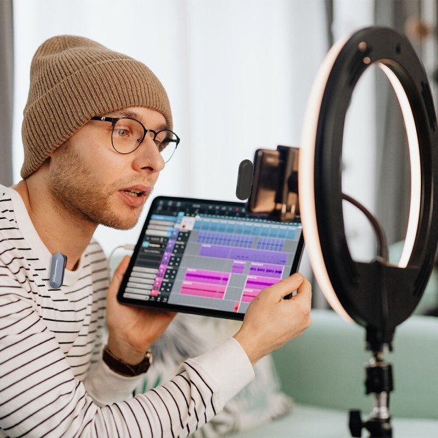 It functions to provide the vloggers, performers, etc. with a mix of audio sources, including ongoing recording and continued backgrounding. This helps reduce the exposure to loud sound and the risk of hearing loss.