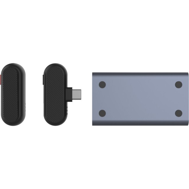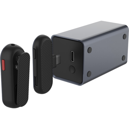 SYNCO for the first time announced a charging case for recording microphone. With this case, charging is as simple as placing the transmitter in the case. The RED light on the transmitter lets you know that it is charging. The receiver side is powered by the phone.