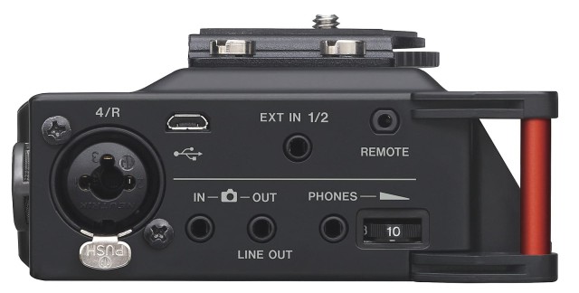The designer of the DR-70D focused on making the unit small so that it does not interfere with camera-work when it is attached to a camera support system or stabilizer. The unit has tripod screw threads on the bottom side and a removable camera attachment screw on its top. A hot shoe mount is also included so you can attach the recorder in the way most convenient for you by placing it between a tripod and the camera or on top of the camera with a hot shoe.
