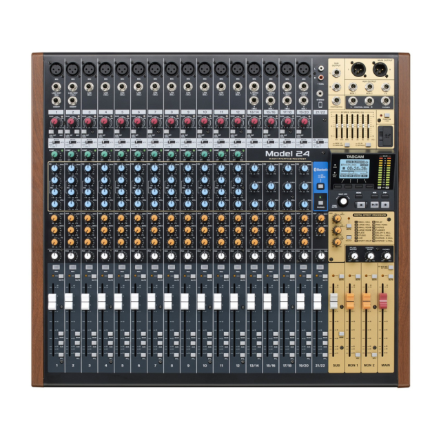 Designed to be both lightweight and rugged, the Model 24 can easily be carried from studio to stage with the confidence that TASCAM’s legendary reliability will keep the music going.