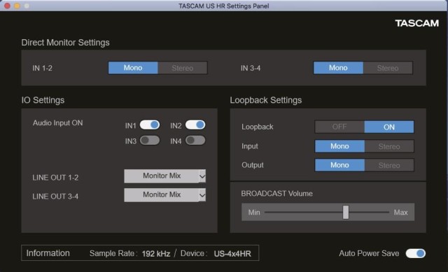 The four-channel US-4x4HR is a member of the Tascam US-HR series of high-resolution USB audio interfaces and an enhanced version of the popular Tascam US-4x4. It provides four mic/line inputs, two of which can alternatively be used for direct input of a guitar or bass, four balanced line outputs, two headphones connectors, and MIDI I/O to your Windows or Mac computer or your iPhone or iPad*. This interface is ideal for multitrack recording of two instruments and two vocalists, for instance, or multi-media production with high demands on simple operation and studio-quality sound. The included loopback function and support for Open Broadcaster Software (OBS Studio), however, makes it also an excellent choice for two-channel podcast creation and live streaming.