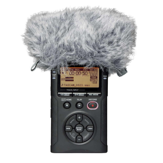 The Tascam WS-11 is a windscreen for DR series recorders.