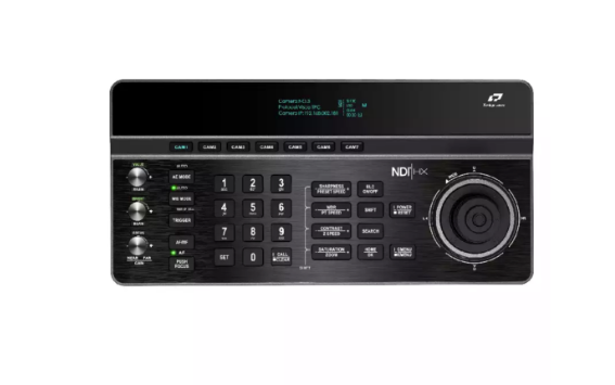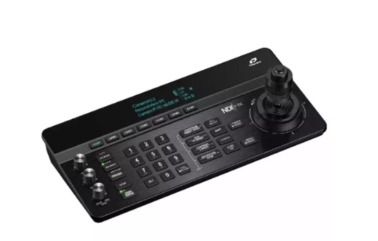 Equipped with a precision four-dimensional joystick, the controller enables smooth pan, tilt, and zoom operations. The intuitive layout features dedicated buttons and knobs for adjusting exposure, white balance, focus, and other image parameters in real time. A built-in 3.12-inch OLED display provides clear status feedback, while 128 preset positions allow quick camera recall and positioning.
