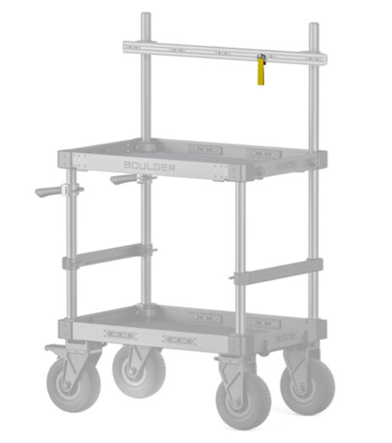 The Tilta TC-MS-Y 1/4"-20 Mounting Strap (Yellow) is a bright, high-visibility woven-fabric loop with an aluminum 1/4"-20 threaded stud that instantly turns any open 1/4"-20 hole on the Boulder Camera Cart into a strong hanging point for tools, cables, pouches or markers—making it easy to spot and grab gear on busy sets.