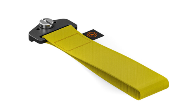 The Tilta TC-MS-Y (Yellow) is a simple, rugged organizational accessory built specifically for the Tilta Boulder Camera Cart series. Its CNC-machined aluminum 1/4"-20 male screw threads securely into any 1/4"-20 female hole on the cart, instantly forming a tough, bar-tack-stitched nylon webbing loop capable of holding coiled cables, lens tools, tape rolls, wireless receivers or small pouches. The vivid yellow color stands out against black cart frames for instant visual identification on dark sets or in low light, while the ultra-slim profile allows multiple straps to be placed side-by-side without clutter.