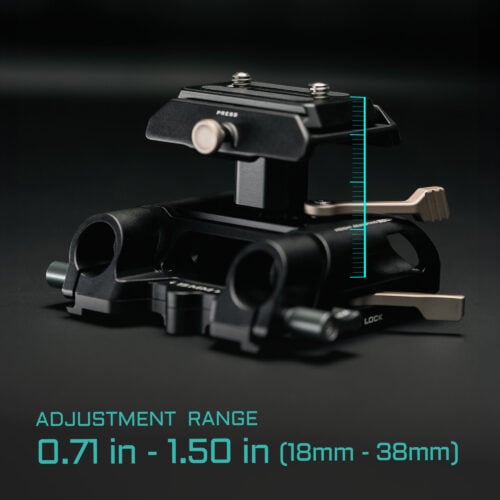 Introducing the Arca Height Adjustable 15mm LWS Baseplate. This 15mm Baseplate allows users to utilize 15mm rods (not included) in order to mount various accessories such as matte boxes or follow focus systems. Unique to this unit is the adjustable height design which allows users to adjust the height of their camera in relation to their rods.