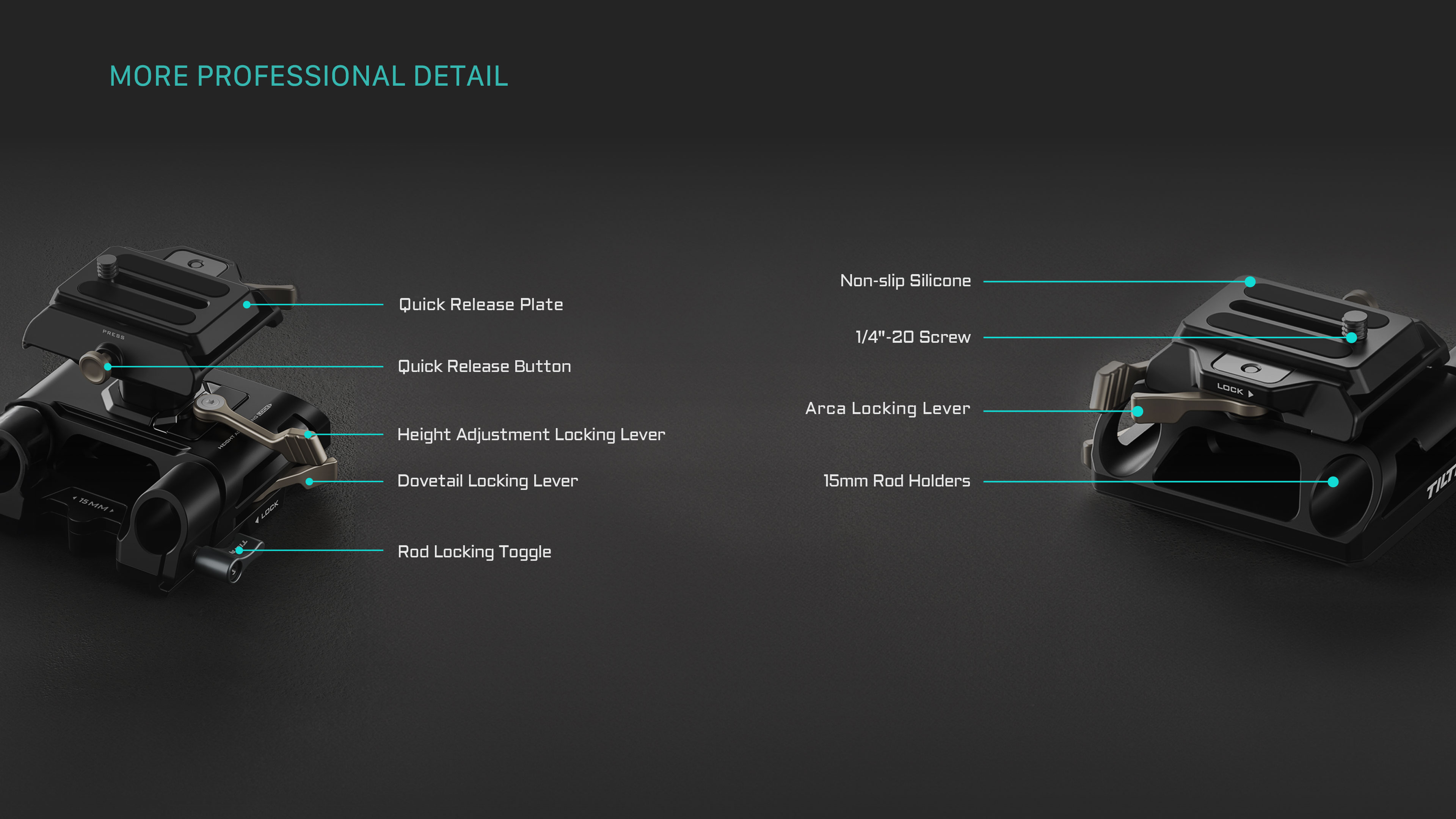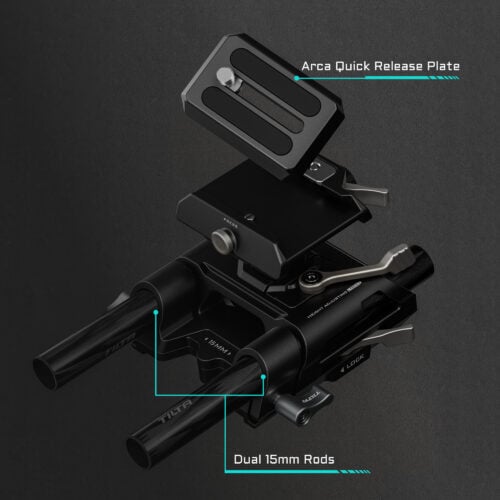 The bottom of the baseplate is compatible with Tilta Standard Dovetails and also features 1/4″-20 threads for mounting to tripods and other support systems.