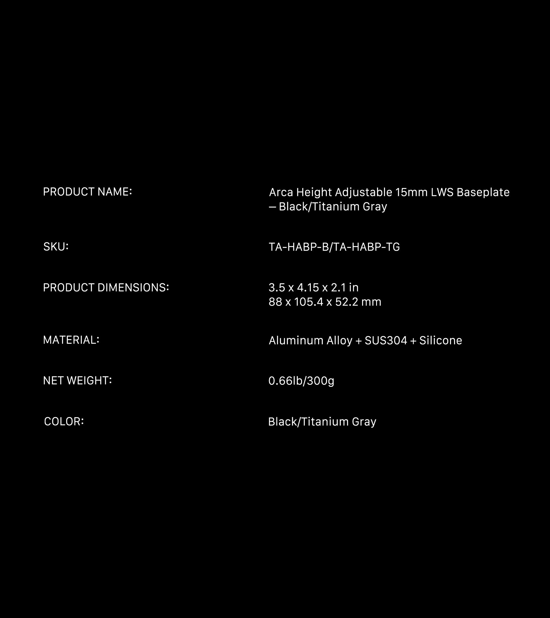 Introducing the Arca Height Adjustable 15mm LWS Baseplate.