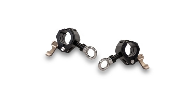 Armorman 3.0 Overhead Configuration Gimbal Ring Adapter Clamp. If you have a ring-based gimbal, the Overhead Configuration Gimbal Ring Adapter Clamps allow for an easy quick-release solution to attach and detach your gimbal to the Armor Man 3.0?s mechanical arms when in the overhead operating mode. The clamps attach to the left and right sides of the top of the gimbal ring and then after the Overhead Configuration Cable Pulleys are attached to each of the Armor Man's arms, the operator can simply use the carabiners of the extendable bungee cables to attach to the gimbal to then start operating. When you want to detach the gimbal, release the carabiners off of the clamps.