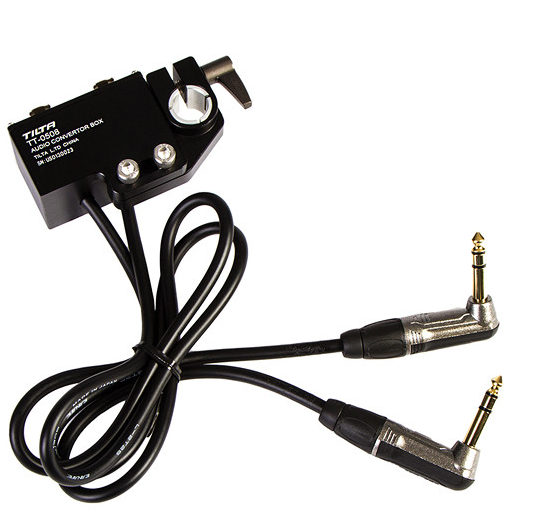 The Tilta TT-0508 XLR Audio Converter is a compact, rod-mounted passive adapter that adds two professional balanced XLR microphone inputs to the Blackmagic Cinema Camera (EF/MFT) and Blackmagic Production Camera 4K by converting them to the cameras’ native 1/4″ TRS jacks – perfect for field recordists who need to use industry-standard XLR mics and cables with these early BMCC models.