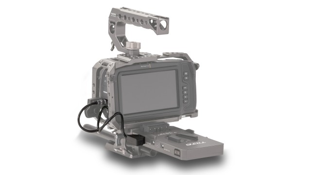 This P-tap power cable can be used to provide greater battery life for your BMPCC 4K/6K camera with the variety of battery plates and battery baseplates that we offer. The P-tap end goes into one of the P-tap outputs on the battery plates and battery baseplates and then the other end goes into the power input port of the BMPCC 4K/6K.