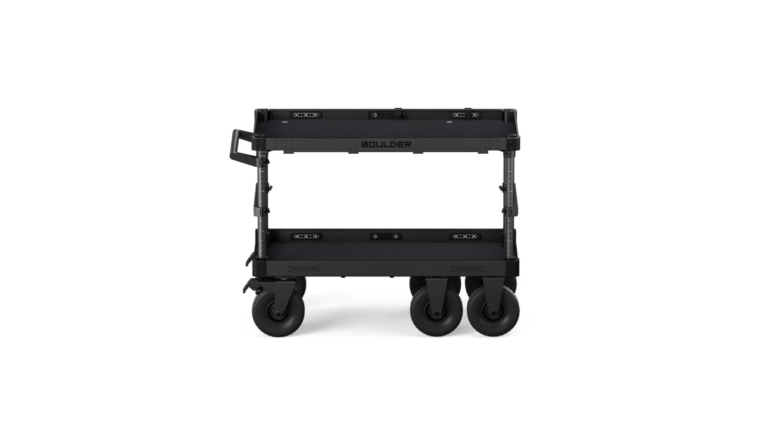 At its core, the Boulder XL features a reinforced galvanized steel chassis, complete with a rear spine and cross-beam framework that resists flexing and deformation under extreme loads. Even when fully loaded, the top tray remains flat and stable—providing confidence when handling sensitive equipment and heavy batteries.