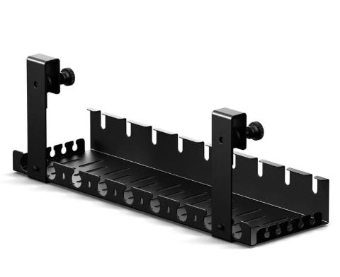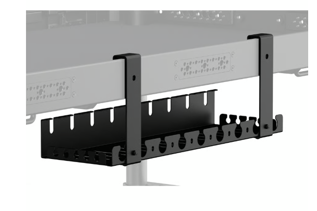 The bin provides ample space to securely store power strips, AC adapters, and excess cabling, while its open-access design allows for quick cable routing and easy access during operation. Ventilation holes on the bottom help prevent heat buildup, ensuring safe use of power equipment over extended periods.