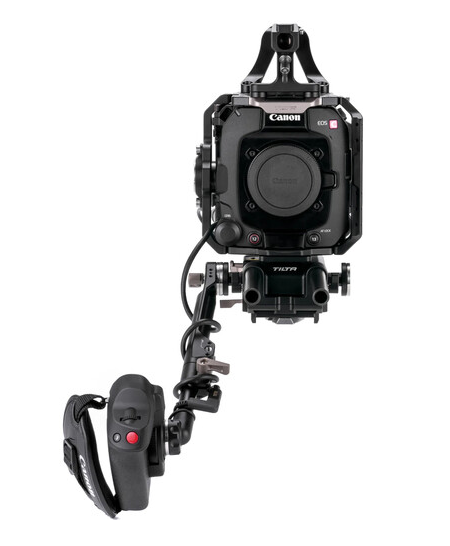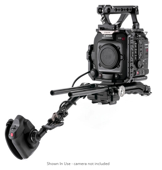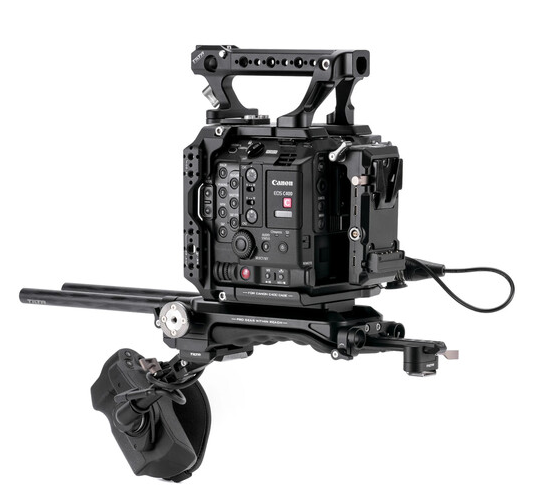Tilta’s Pro Kit transforms the Canon C400 into a fully rigged cinema workhorse while maintaining its compact advantages. The lightweight aluminum cage consists of modular plates that offer extensive anti-twist 1/4"-20 & 3/8"-16 threads, NATO rail, ARRI rosettes and 15 mm LWS support. The included V-Mount battery plate powers the camera and accessories, the quick-release shoulder pad baseplate enables fast handheld-to-tripod transitions (Manfrotto top, VCT-U14 bottom) and the top handle adds extra mounting points. A right-side extension arm with 50 cm USB-C cable relocates the C400’s control grip for shoulder comfort, while two carbon-fiber rods support matte boxes or follow focus. Perfect for documentary and narrative crews who need speed, balance and expandability.
