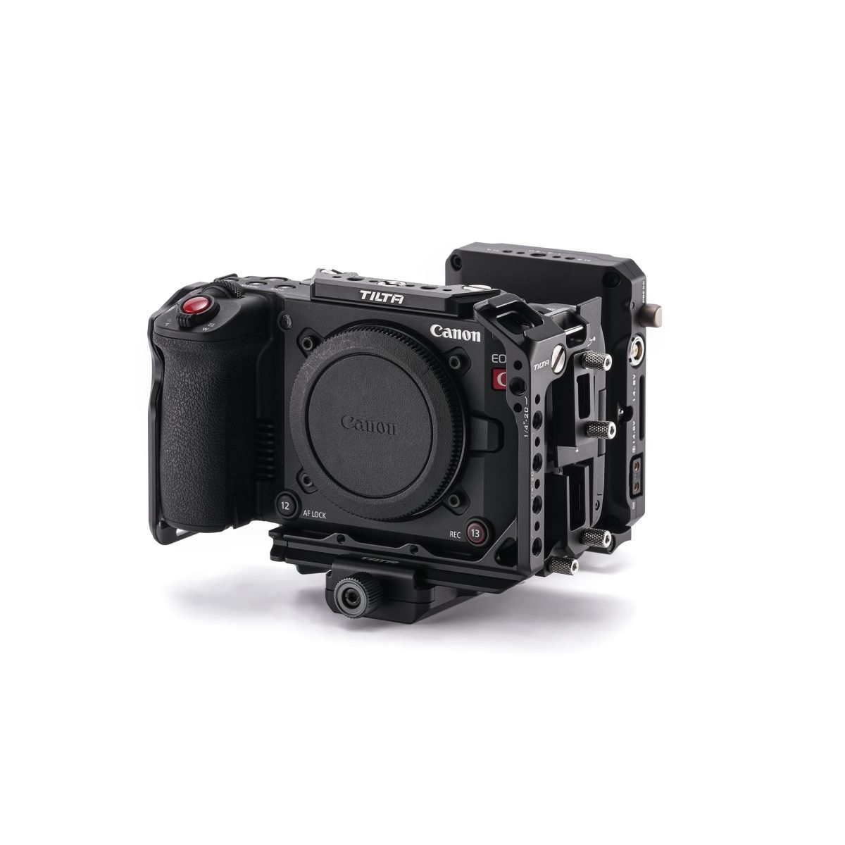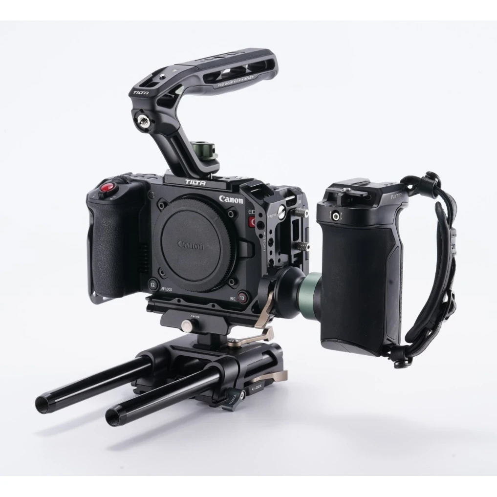 The Tilta Camera Cage for Canon C50 Power Kit is a precision-engineered protective and functional rig specifically designed to fit the Canon C50 camera body. It offers enhanced protection while providing a robust platform for mounting a variety of video production accessories. This cage combines modular construction with extended power options to support demanding shooting conditions and extended operation times.
